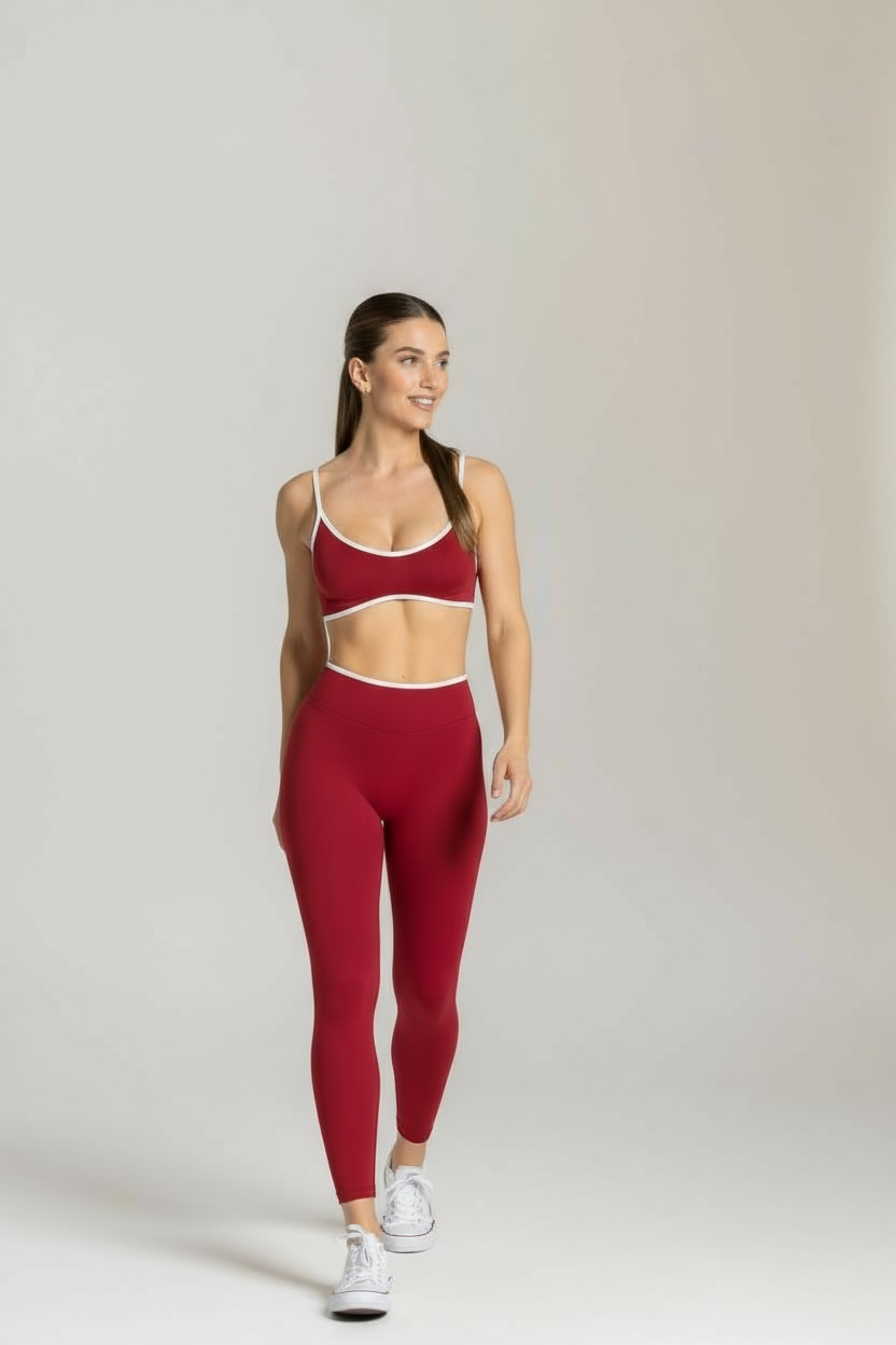 El top, con tirantes finos y detalles en contraste, aporta un aire elegante y minimalista, perfecto para entrenar con estilo o para combinar en un look sporty-chic fuera del gym. Los leggings de tiro alto ofrecen soporte total y un push-up effect que realza tu glúteo, brindándote confianza y comodidad en todo momento.